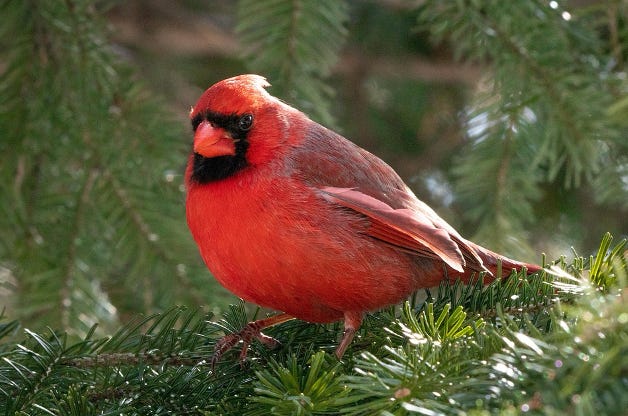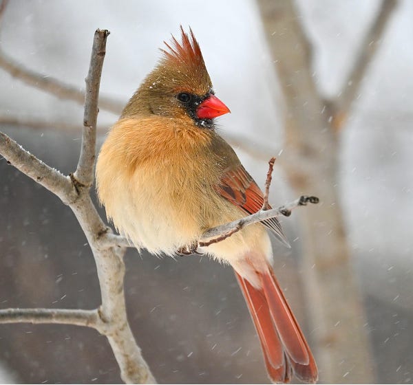 [Nota bene: This post was inspired by the work of artist Jean. S. Kaiyou, who posted a drawing of a female cardinal on her December 5, 2025 Substack.]